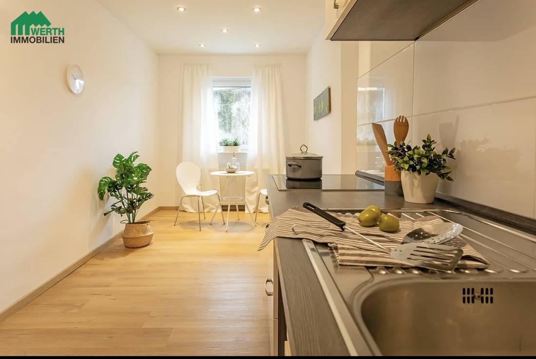 Direkt angrenzend befindet sich die moderne Einbauküche, die im Jahr 2023 erneuert wurde. Hochwertige Elektrogeräte, durchdachte Planung und ausreichend Platz für einen Essbereich machen sie zum Mittelpunkt des täglichen Lebens.