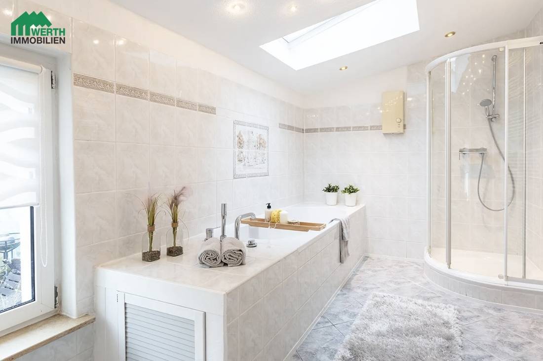 Ergänzt wird das Erdgeschoss durch ein großzügiges Tageslicht-Vollbad, das 2005 modernisiert wurde. Neben einer komfortablen Badewanne verfügt es zusätzlich über eine separate Dusche – ideal für Alltag und Entspannung gleichermaßen.