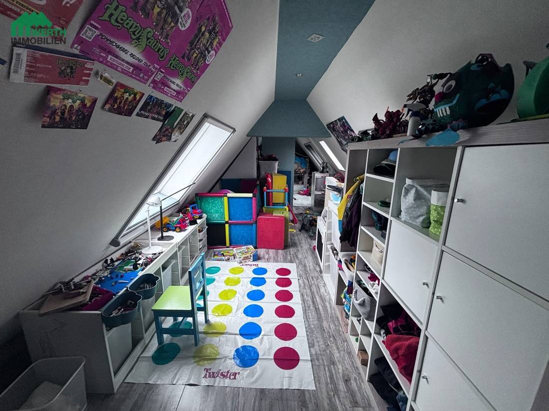 Im Dachgeschoss stehen weitere 64,17 qm Wohnfläche mit ebenfalls drei Zimmern, Küche und Bad zur Verfügung. Über eines der Zimmer gelangt man in den 2018 ausgebauten Spitzboden, der sich ideal als Spielbereich für Kinder, Hobbyraum oder ruhiger Rückzugsort nutzen lässt. Der Ausbau sowie die Dämmung des Dachbereichs wurden fachgerecht ausgeführt.