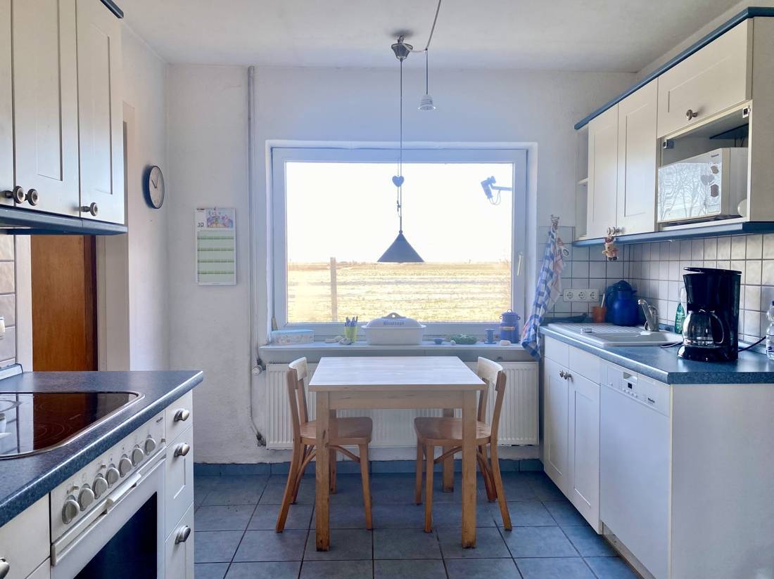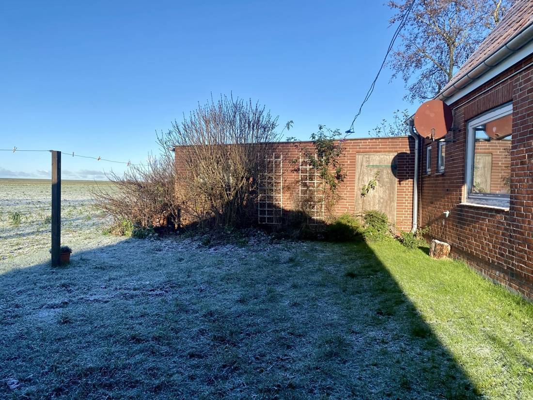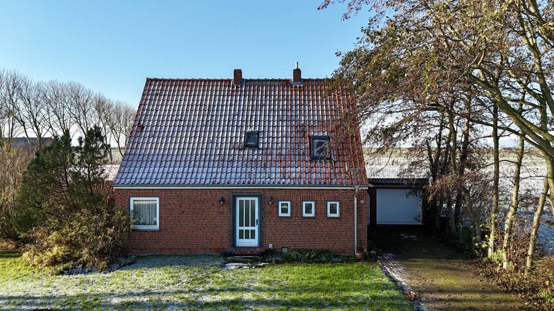 Das Einfamilienhaus befindet sich in einer ländlich geprägten Umgebung zwischen Friedrichskoog und Dieksanderkoog. Die weitläufige Landschaft mit offenen Feldern prägt das Umfeld und vermittelt ein ländliches Wohngefühl.