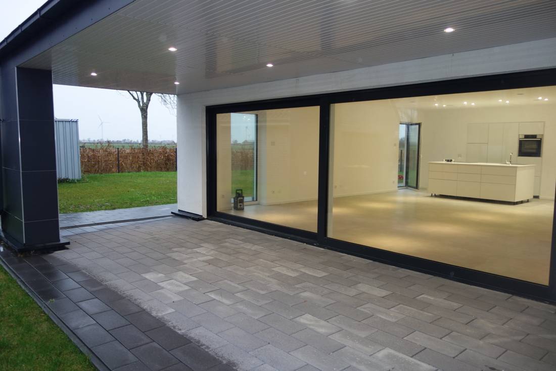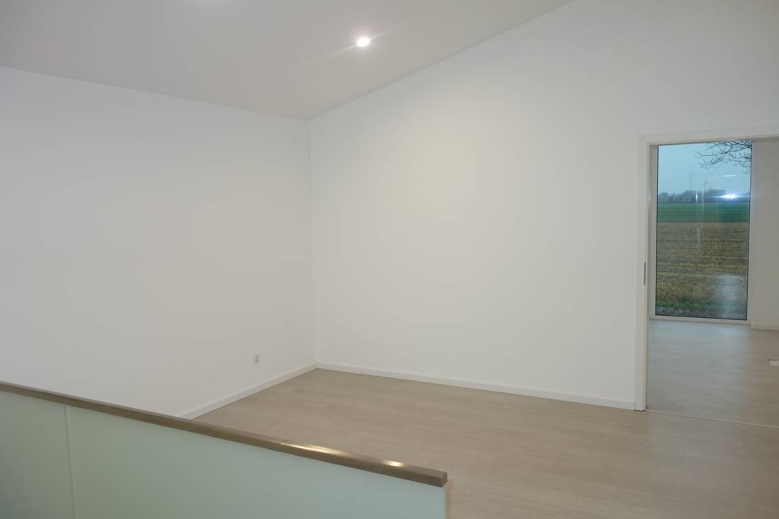 Das Obergeschoss überzeugt mit einer offenen Galerie, einem weiteren Schlafzimmer und einem modernen Badezimmer. Ein besonderes Highlight stellt die großzügige Dachterrasse mit einer eleganten Brüstung aus Weißglas dar, die einen schönen Blick über die angrenzenden Felder bietet. Ergänzend dazu lädt die Terrasse im Erdgeschoss zum Entspannen im Freien ein.