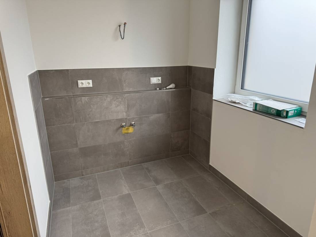 Das Badezimmer überzeugt mit einer hochwertigen Ausstattung und bietet mit seinen rund 8,6 Quadratmetern außergewöhnlich viel Platz. Eine elegant abgetrennte Dusche sowie ein behaglicher Bereich zum Ankommen und Aufwachen schaffen eine Atmosphäre, in der man entspannt in den Tag starten kann. Ein zusätzlicher Hauswirtschaftsraum sorgt für praktischen Stauraum und bietet Platz für Waschmaschine, Trockner und andere Haushaltsgeräte.