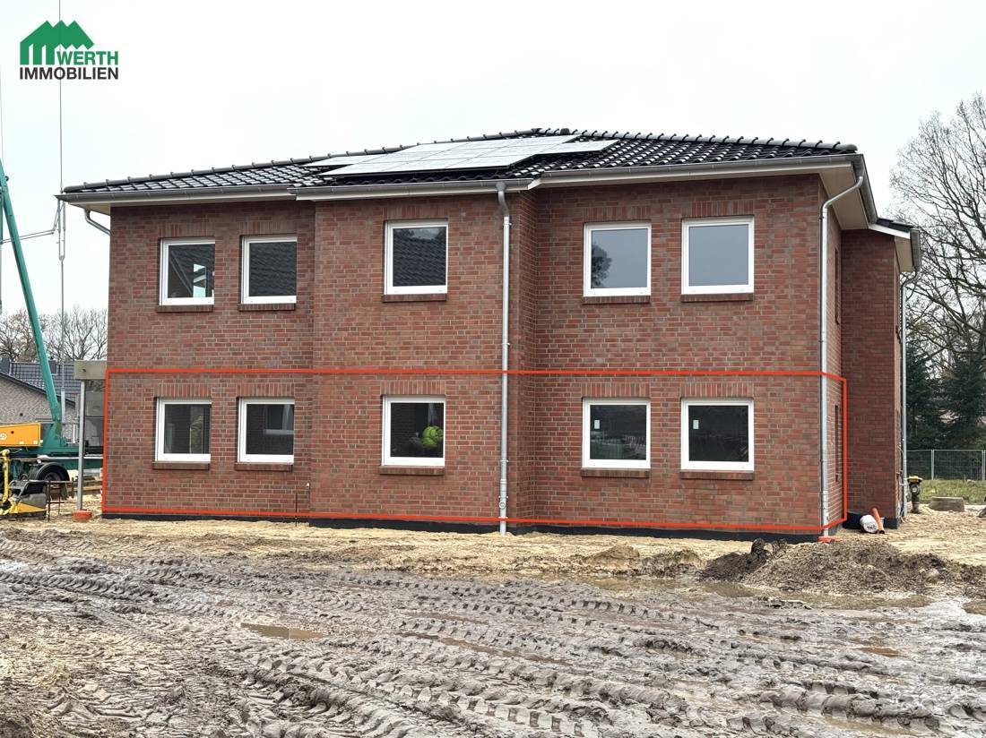 Diese großzügige 3-Zimmer-Wohnung im Erdgeschoss bietet Ihnen ein Zuhause, das modernen Wohnkomfort mit einem angenehm ruhigen Wohngefühl verbindet. Beim Betreten erwartet Sie ein einladender Flur, von dem aus alle Räume erreichbar sind – praktisch, übersichtlich und barrierearm. Das helle Wohnzimmer ist großzügig geschnitten und bietet ausreichend Platz für einen Essbereich und eine gemütliche Sofalandschaft. Von hier gelangen Sie direkt auf die überdachte Terrasse, die sich wunderbar für entspannte Nachmittage oder gesellige Abende eignet. Auch das Schlafzimmer verfügt über einen eigenen Terrassenzugang und wirkt dank großer Fenster lichtdurchflutet. Das Kinderzimmer eignet sich ideal als Büro, Gästezimmer oder klassischer Schlafraum für den Nachwuchs. Ein praktischer Abstellraum sowie das modern ausgestattete Badezimmer mit hochwertigen Fliesen und sanitären Elementen runden das Raumangebot ab. Hochwertige Materialien, eine angenehme Raumhöhe und die besondere Lage im Erdgeschoss schaffen ein Wohngefühl, das sowohl Komfort als auch Geborgenheit vermittelt.
