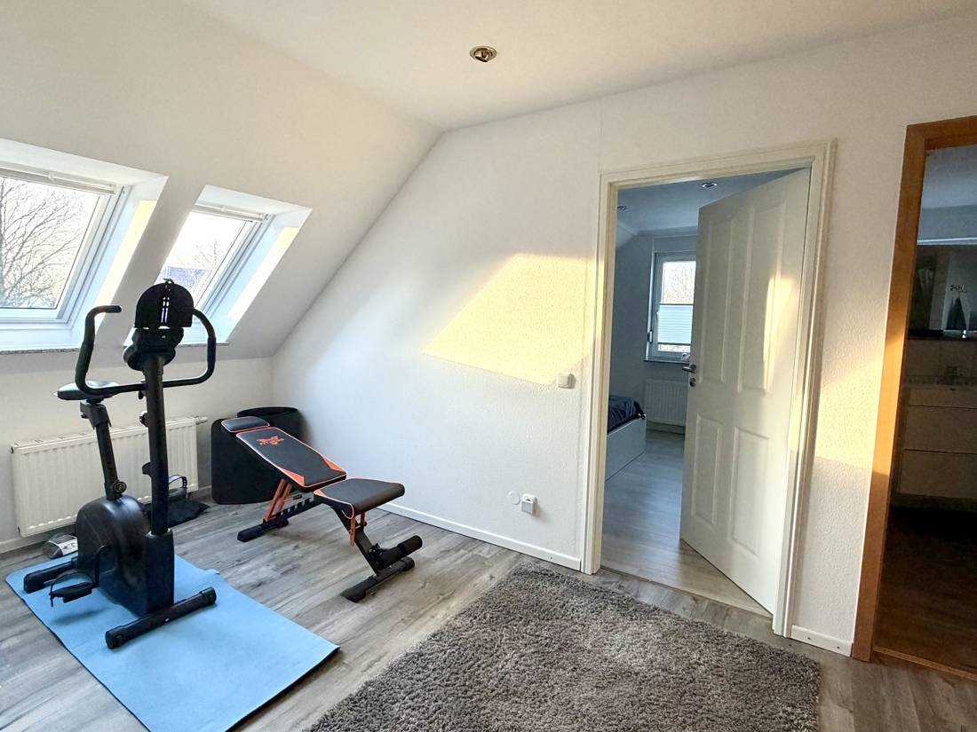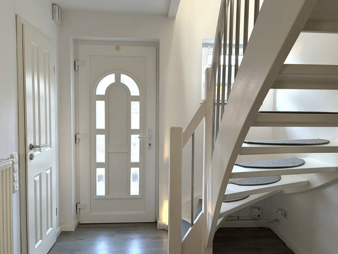 Bereits beim Betreten des Hauses empfängt Sie ein freundlicher Flur mit Eingangsbereich. Das Erdgeschoss verfügt über ein Gäste-WC, eine Küche mit Einbauküche sowie einen offenen Wohn- und Essbereich mit Durchbruch zur Küche. Große Fensterflächen sorgen hier für viel Tageslicht und schaffen eine helle, angenehme Wohnatmosphäre. Ein Kaminanschluss im Wohnbereich bietet zusätzlich die Möglichkeit einen neuen Kamin zu installieren. Ergänzt wird das Erdgeschoss durch einen praktischen Hauswirtschaftsraum mit Einbauschränken und separatem Seiteneingang.