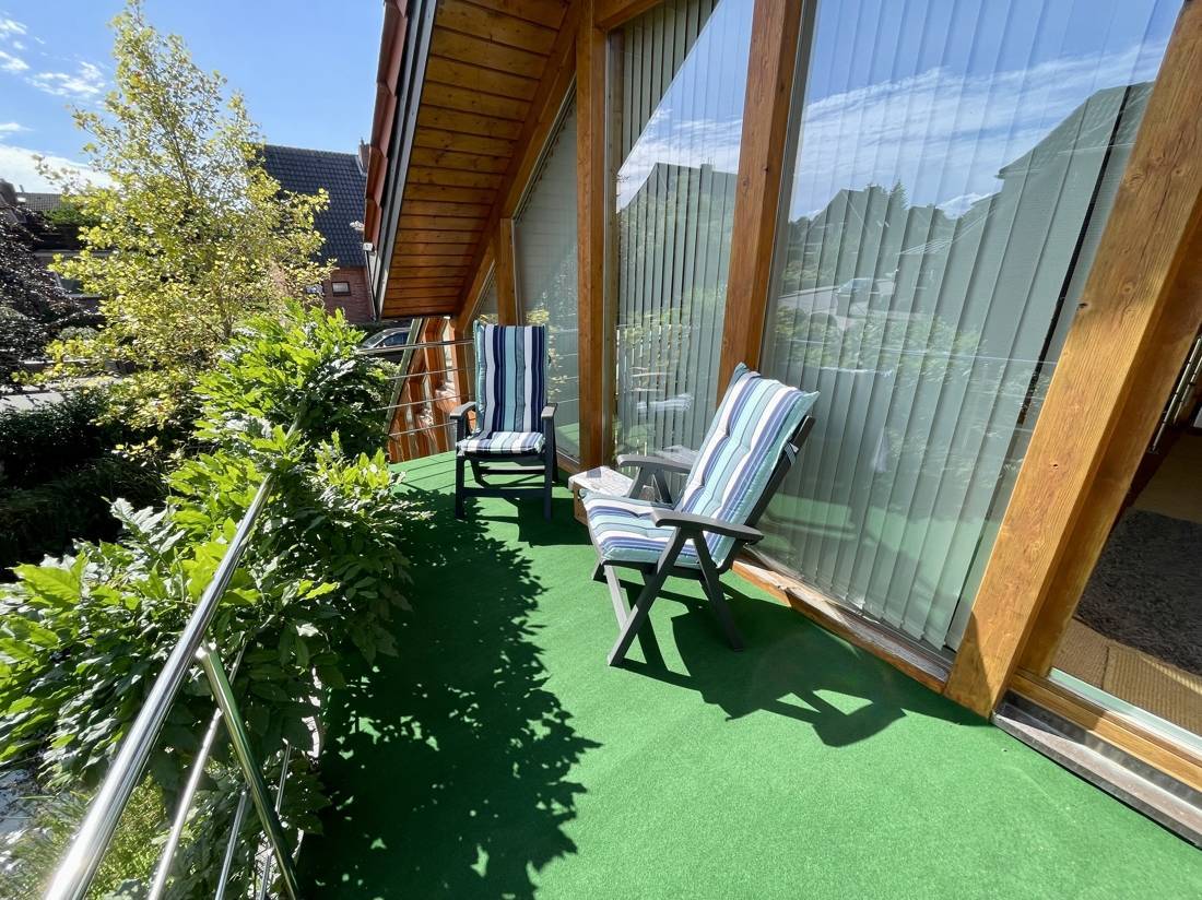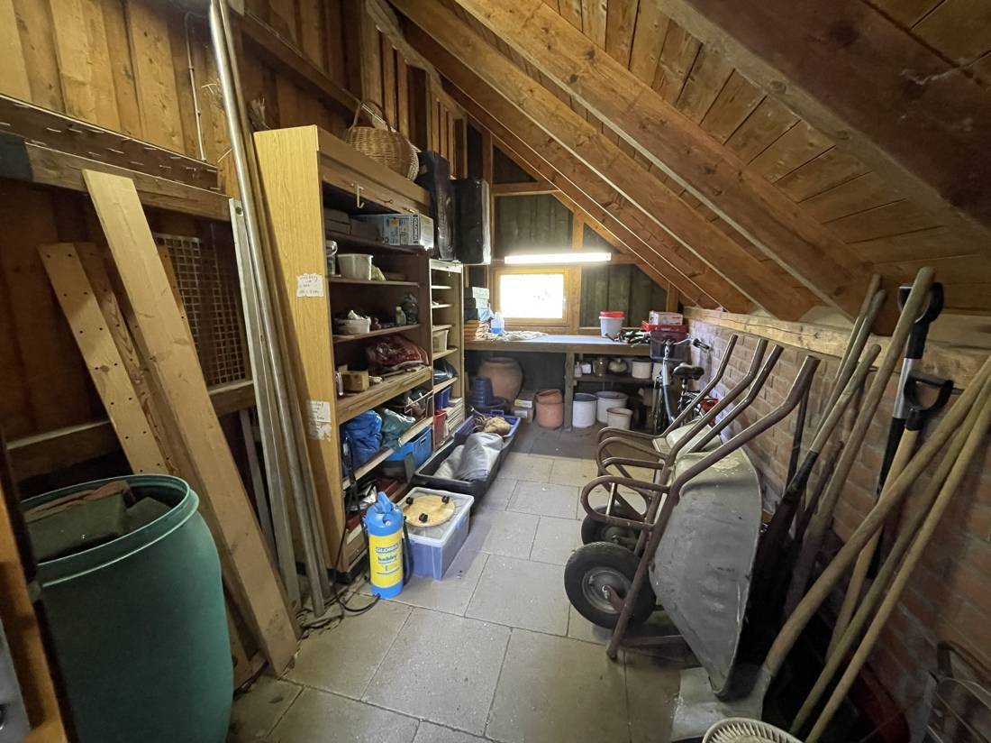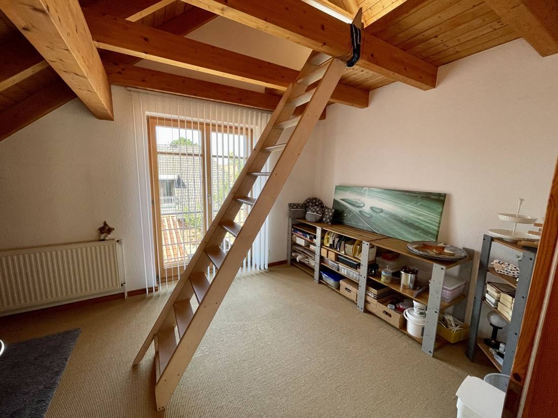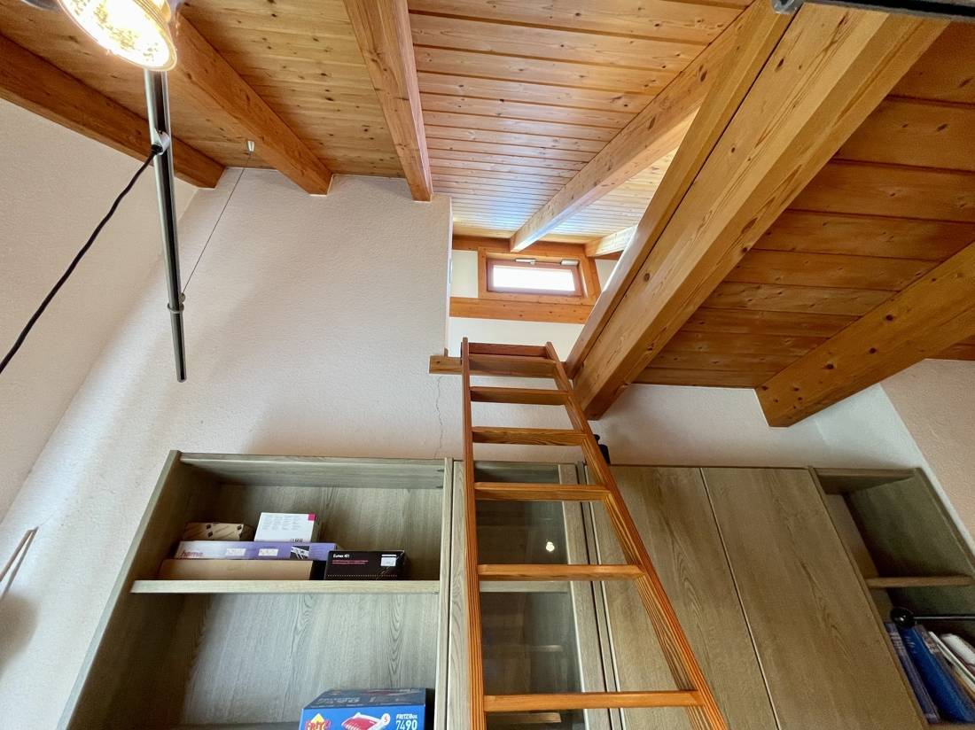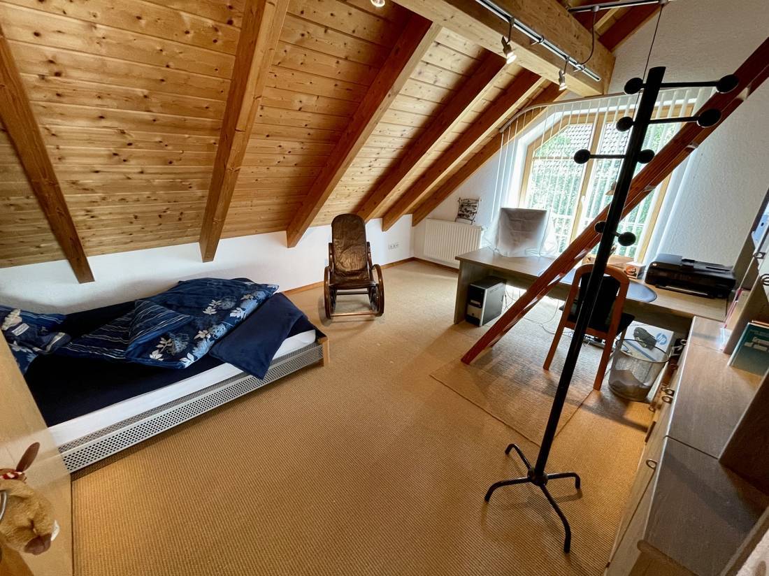 Zwei der Zimmer verfügen über zusätzliche, ausgebaute Räume, die über eine Innentreppe erreichbar sind. Die Spitzbodenfenster in diesen Zimmern lassen sich elektrisch öffnen. Der gesamte Fußboden im Obergeschoss, mit Ausnahme des Bads, ist mit einem Sisalteppich ausgelegt.