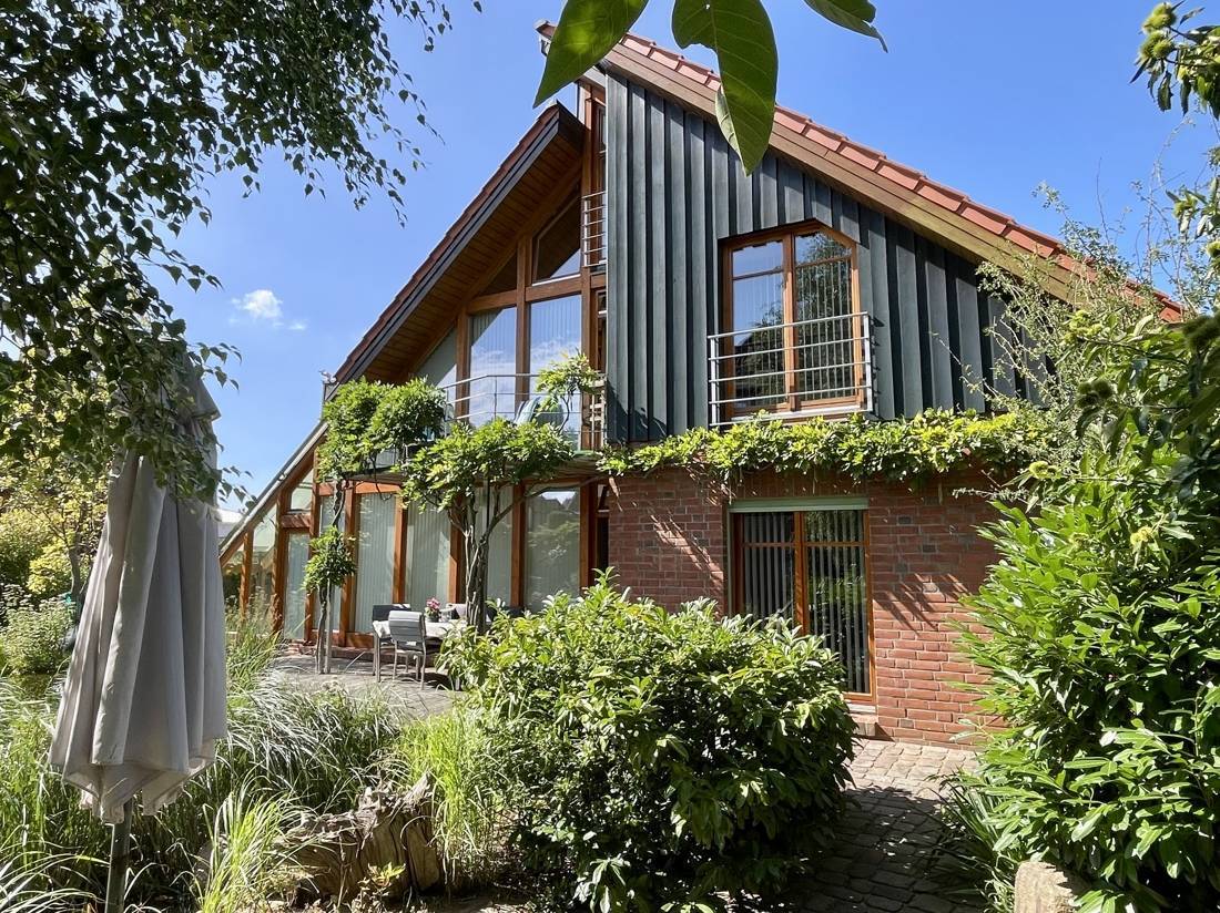 Dieses individuelle Architektenhaus überzeugt durch seine durchdachte Gestaltung und die Liebe zum Detail. Es bietet großzügige Wohnräume, luxuriöse Ausstattung und einen bezaubernden Garten.