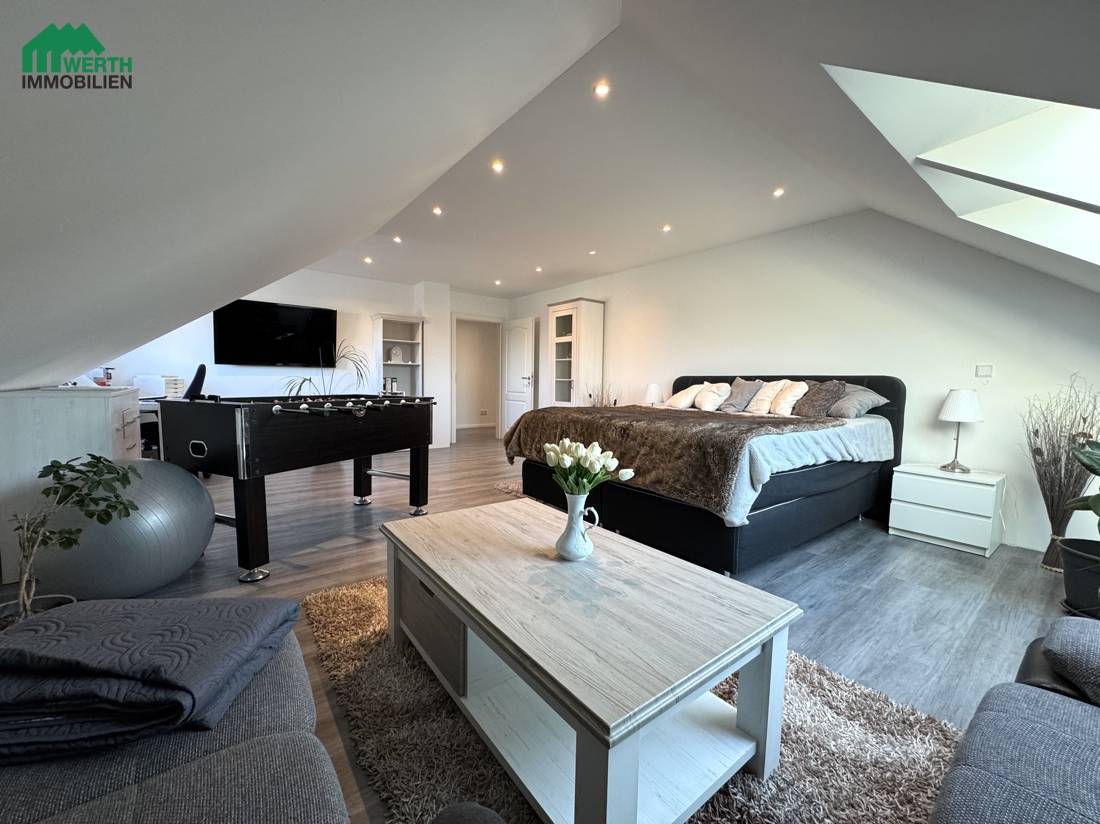 Die Ausbaureserve im Dachgeschoss bietet ideale Voraussetzungen für die Realisierung eines exklusiven Wellnessbereichs mit Sauna und zusätzlichem Badezimmer. Estrich, Gipskarton sowie sämtliche Sanitär- und Elektroleitungen sind bereits vorhanden und ermöglichen eine hochwertige Fertigstellung ohne großen baulichen Aufwand.