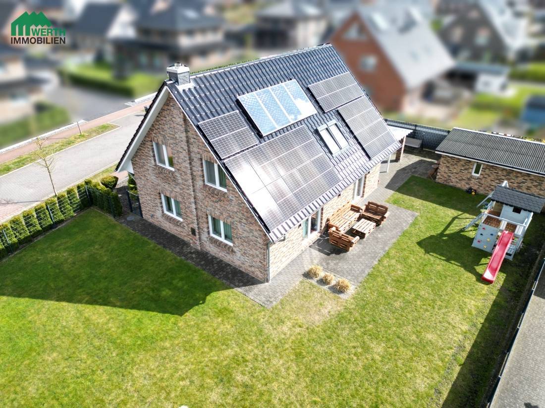 Als KfW-70-Effizienzhaus überzeugt die Immobilie durch ihre energieeffiziente Bauweise. Fußbodenheizung, zentrale Lüftungsanlage, Solarthermie, Photovoltaikanlage sowie ein wassergeführter Kamin sorgen für ein angenehmes Wohnklima und niedrige Betriebskosten. Die massive Bauweise mit hochwertigem Klinkermauerwerk steht für Qualität, Wertbeständigkeit und Langlebigkeit.
