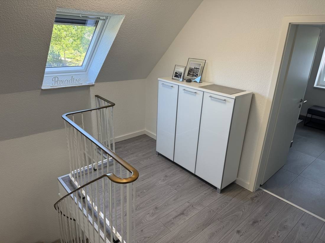 Im Dachgeschoss stehen drei geräumige Zimmer, ein Flur sowie ein sehr modernes Duschbad zur Verfügung.