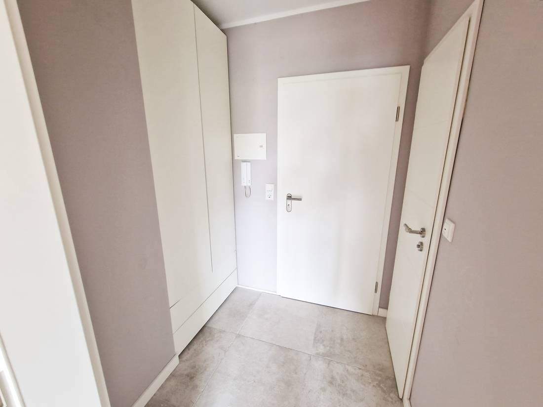 Die Wohnung verfügt über einen Wohn- und Essbereich, eine offene Küche mit Geschirrspüler, ein Schlafzimmer, einen Eingangsbereich mit Einbauschränken und ein modernes Duschbad mit Fußbodenheizung.