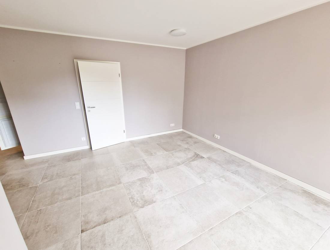 Vom Wohn- und Esszimmer aus gelangt man direkt auf die eigene Terrasse. Durch die großen Fensterelemente fällt genügend Tageslicht in die Wohnung, was ein schönes Wohnklima schafft.