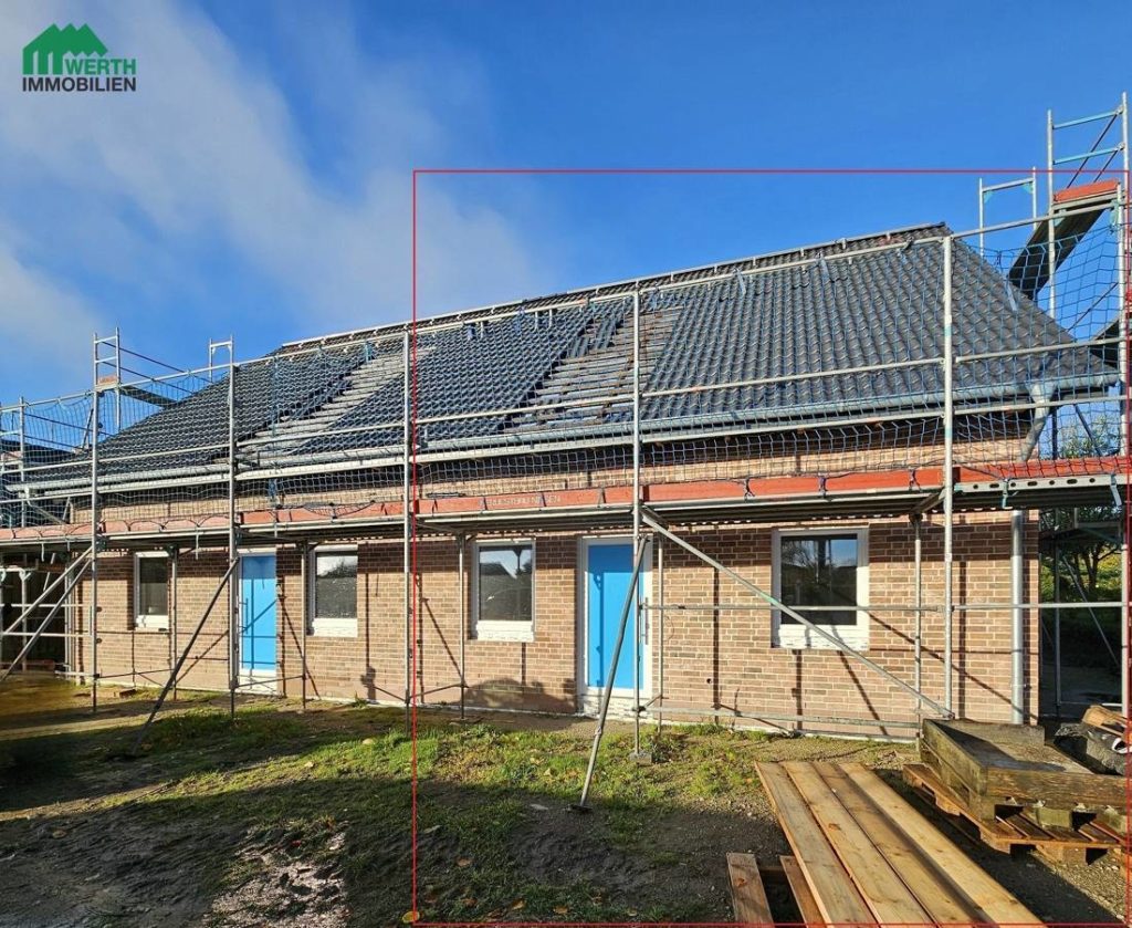 Stand Oktober 2025: Das Dach wird gerade gedeckt, innen trocknet der Putz. S. auch Exposé.