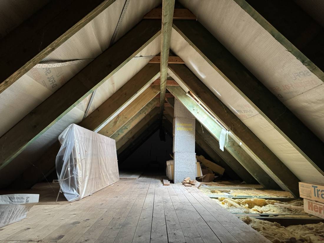 Ein besonderes Highlight ist die elegante Marmortreppe, die ins Dachgeschoss führt. Hier erwarten Sie zwei weitere Schlafzimmer, die sich vielseitig nutzen lassen – ob als Elternschlafzimmer, Gästezimmer oder großzügiger Hobbyraum. Der helle Flur schafft eine offene Atmosphäre, dazu kommen eine praktische Abstellkammer sowie ein komfortables Vollbad.