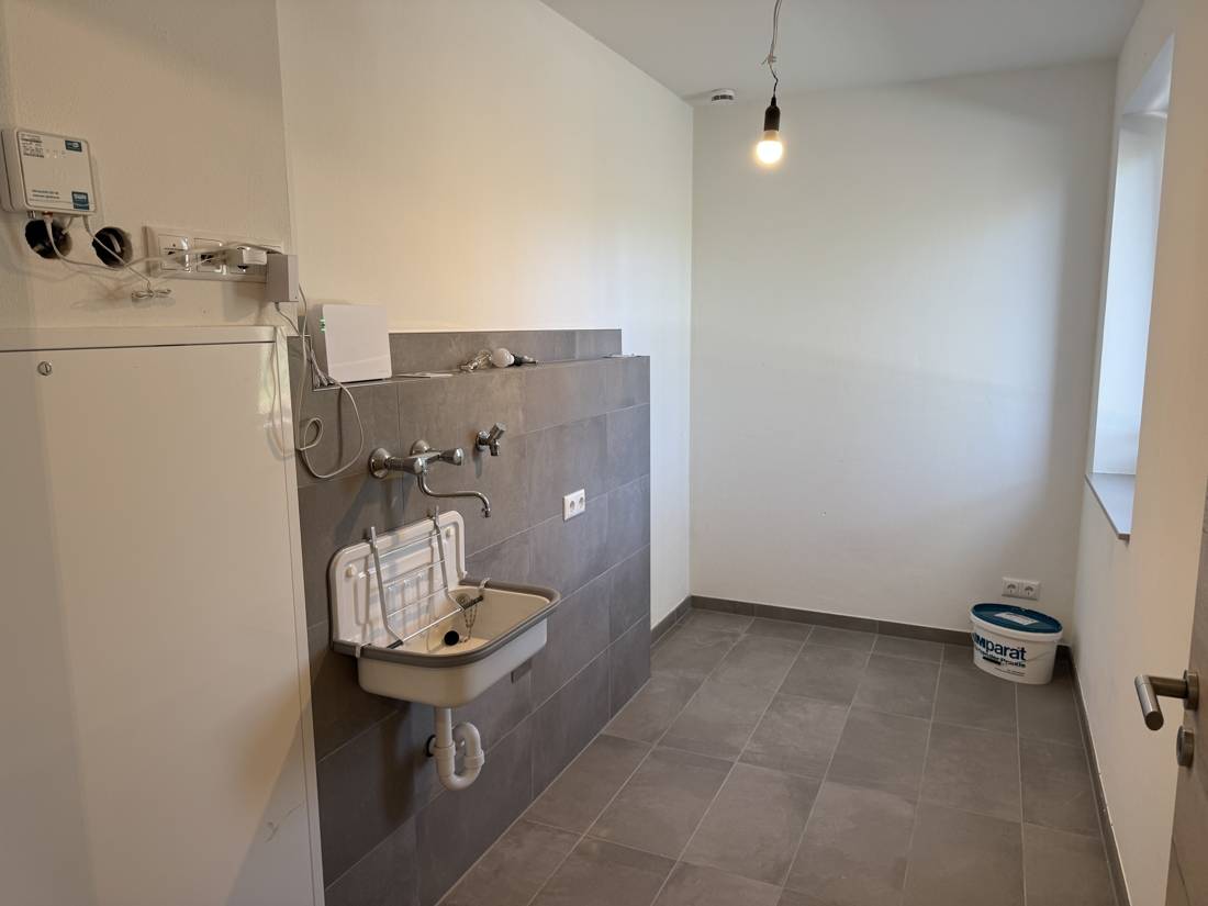 Das Badezimmer überzeugt mit einer hochwertigen Ausstattung, einer stilvoll abgetrennten Dusche und einem angenehmen Wohlfühlambiente. Ein zusätzlicher Hauswirtschaftsraum sorgt für praktischen Stauraum und Platz für Ihre Haushaltsgeräte.