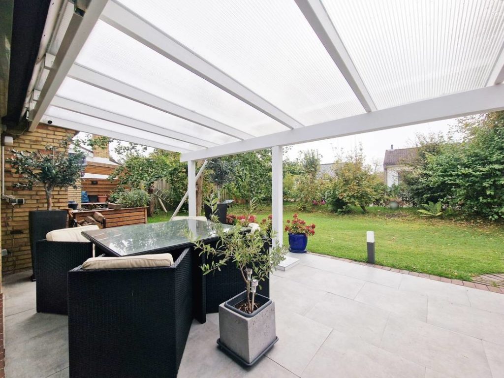 Dieser modernisierte Bungalow aus dem Jahr 1963 liegt in hervorragender Wohnlage im beliebten Nordseeheilbad Büsum – nur ca. 240 Meter vom Meer entfernt. Auf ca. 150 m² Wohn- und Nutzfläche präsentiert sich das Haus nach einer umfassenden Renovierung in 2023 in sehr gepflegtem, zeitgemäßem Zustand: es wurden neue Fußböden verlegt, die helle, moderne Einbauküche mit praktischer Durchreiche zum Essbereich stammt ebenfalls aus 2023, und die effiziente Gas-Brennwerttherme wurde 2021 installiert. Herzstück des Erdgeschosses ist der offene Wohn- und Essbereich mit Kamin und direktem Zugang auf die überdachte Süd-Terrasse, deren Terrassenfliesen erneuert wurden. Ergänzt wird die Ebene durch einen einladenden Flur, ein kleines Kinderzimmer, ein helles Duschbad mit begehbarer Dusche sowie ein geräumiges Schlafzimmer.