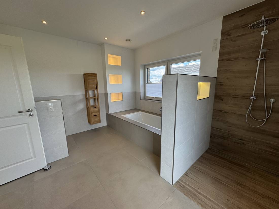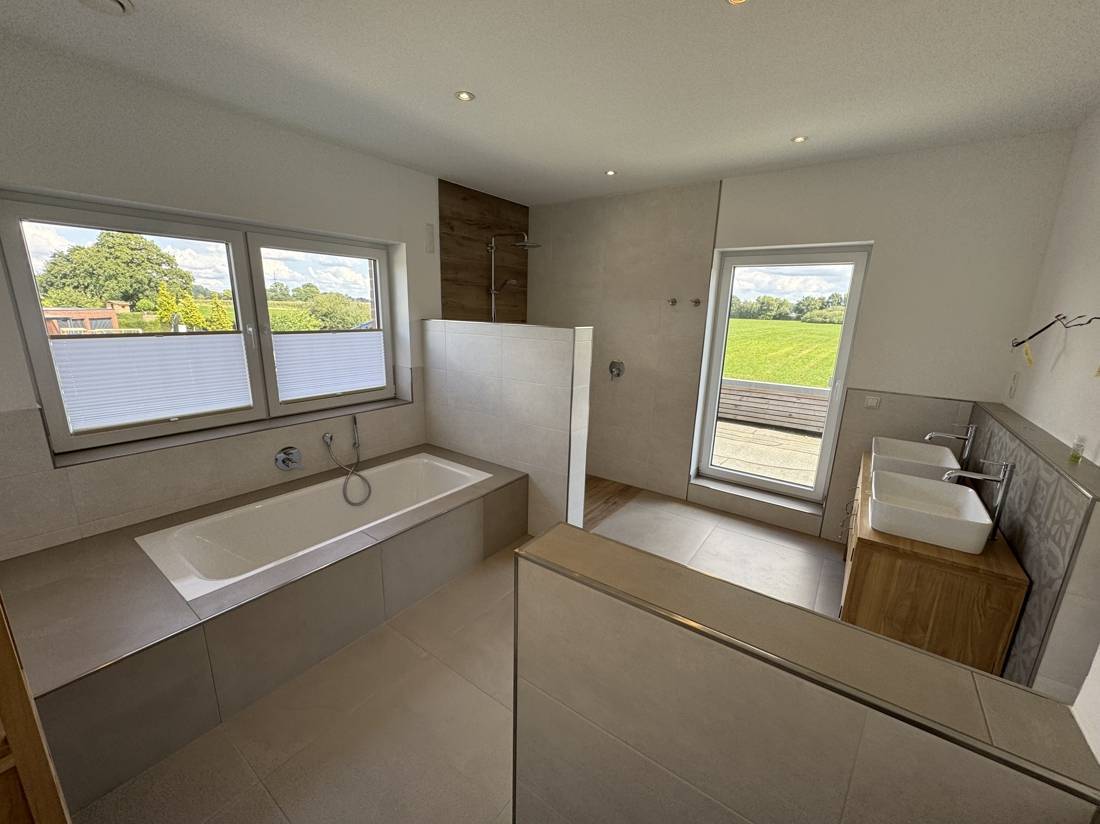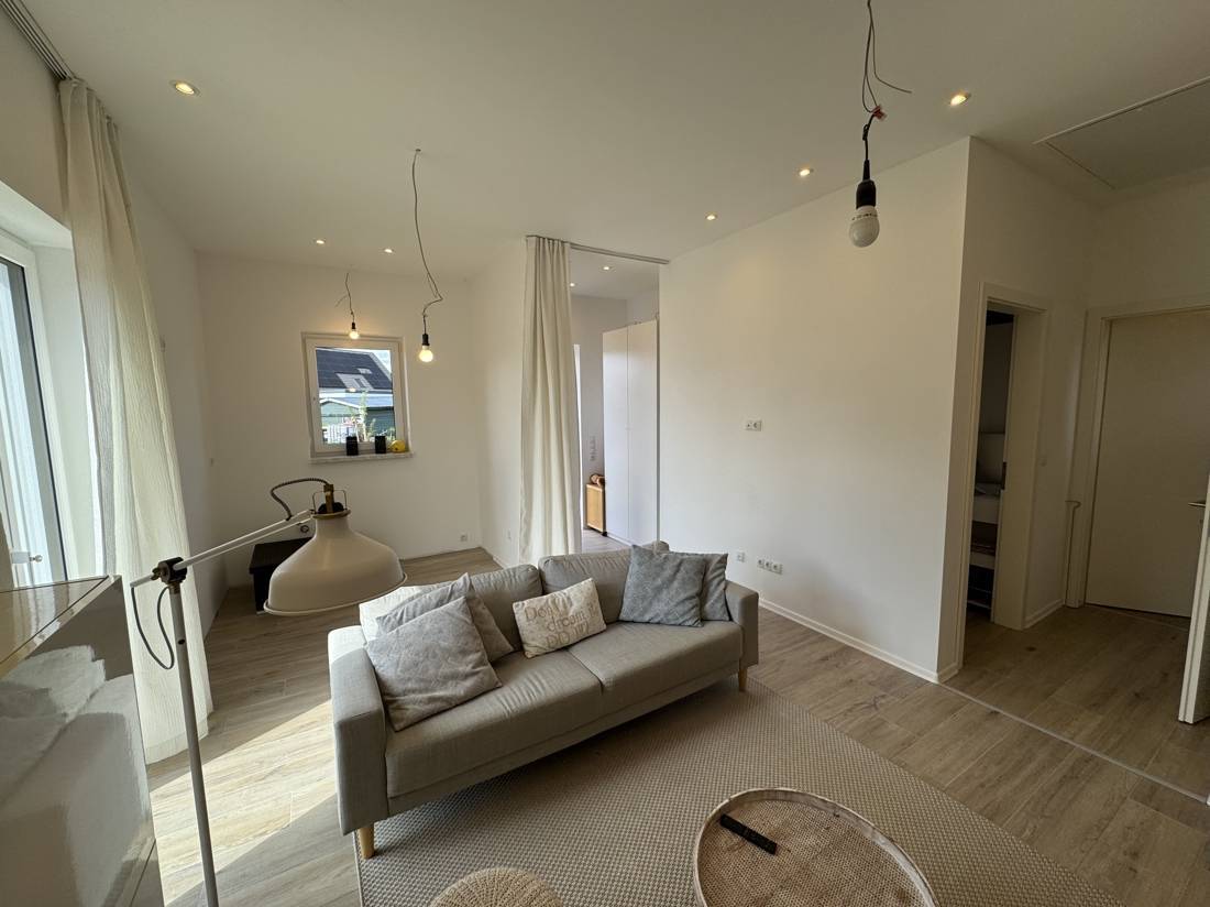 Die Smart-Home-Technik ermöglicht die Steuerung von Licht, Rollläden, Raffstores und Heizung per Tablet oder App. Ergänzt wird dies durch eine zentrale Lüftungsanlage mit Wärmerückgewinnung, die das nachhaltige Wohnkonzept unterstreicht.