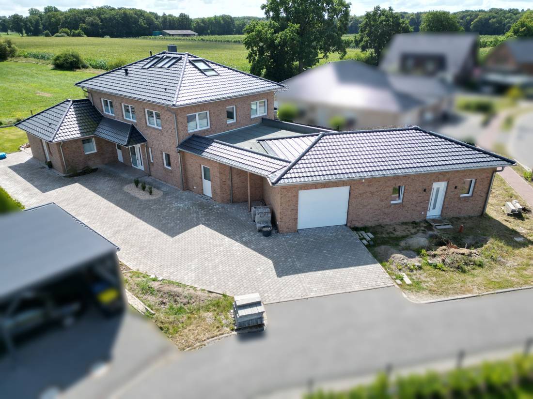 Dieses außergewöhnliche Einfamilienhaus mit einer Einliegerwohnung und einer separaten Gästewohnung vereint modernes Wohnen, hochwertige Ausstattung und flexible Nutzungsmöglichkeiten in bester Feldrandlage von Harsefeld. Der 2021 errichtete Neubau besticht durch klare Linien, zeitgemäße Architektur und eine Energieeffizienz nach KfW-70-Standard.