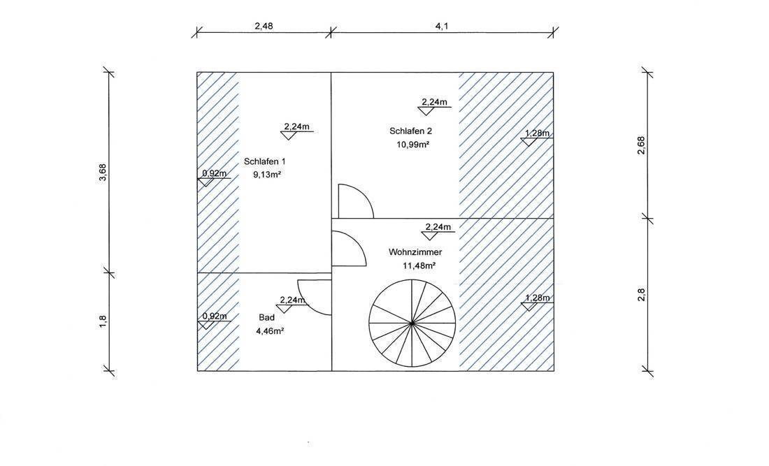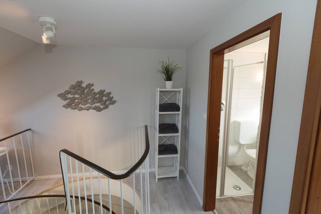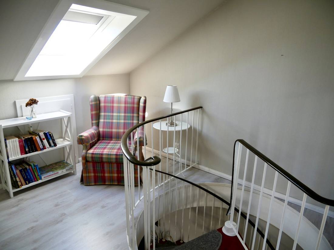 Über eine moderne Wendeltreppe gelangen Sie in das Dachgeschoss, wo sich zwei einladende Schlafzimmer befinden. Hier steht Ihnen zudem ein modernes Badezimmer mit Dusche zur Verfügung.