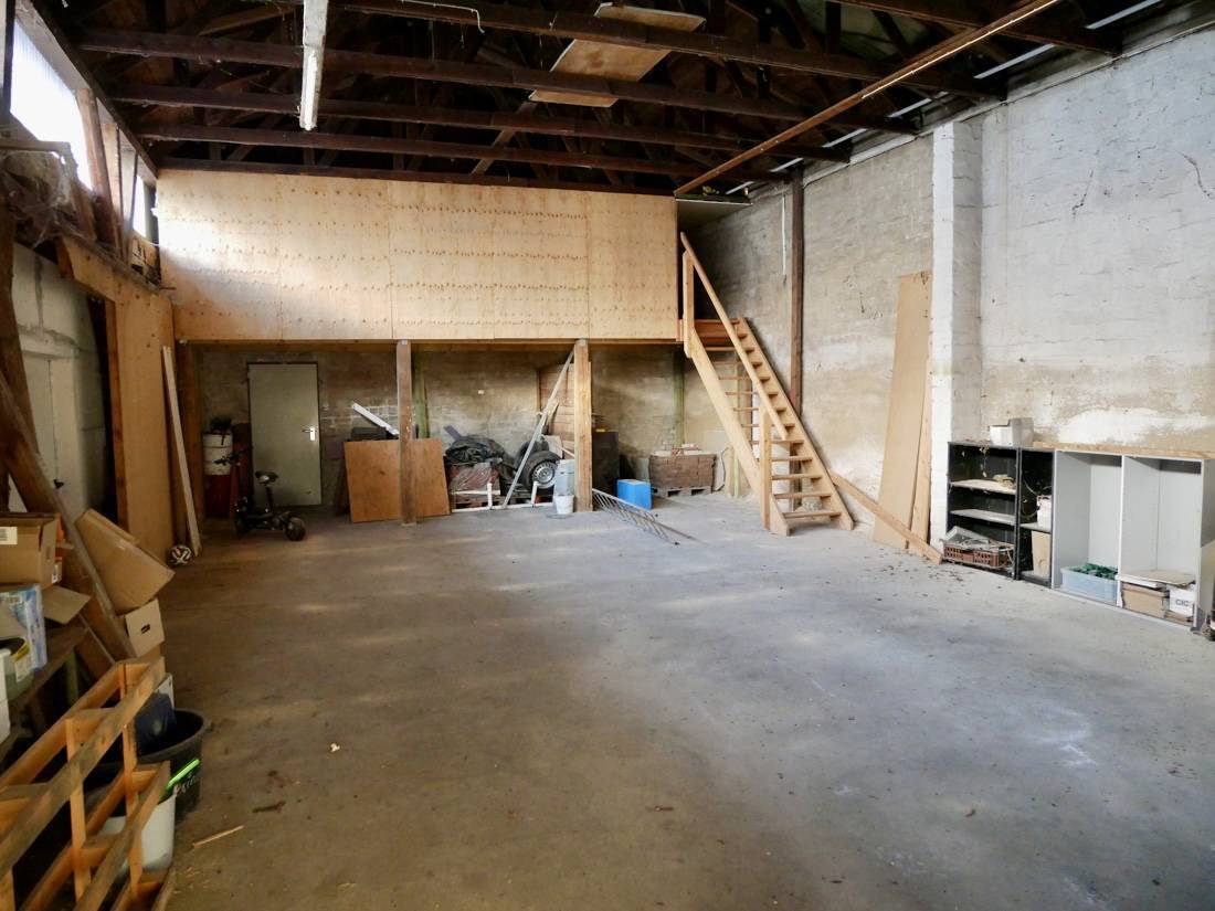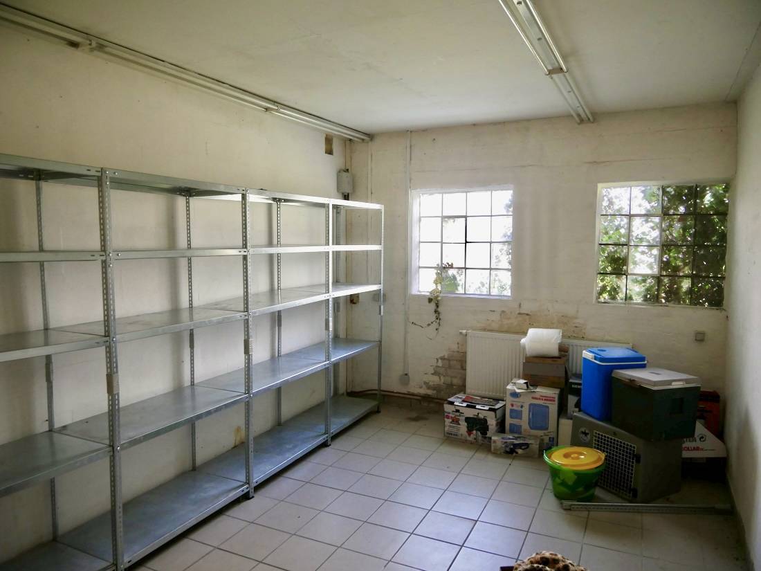Ein besonderes Highlight ist die separate, ca. 240 m² große Gewerbehalle im hinteren Bereich des Grundstücks. Ehemals als Tierarztpraxis genutzt, eignet sich die Halle hervorragend für vielfältige gewerbliche Nutzungen. Sei es als Büro, Lager, Werkstatt oder für individuelle Konzepte.