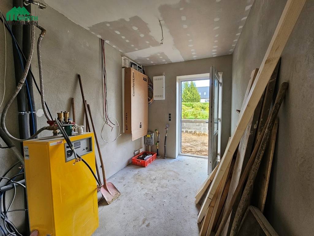 Heizung: Absolut zeitgemäß und voll im Trend: Eine moderne Luftwärmepumpe. Diese ist ebenfalls im Preis enthalten. Selbstverständlich werden die Räume mit Fußbodenheizung erwärmt, sowohl im Erdgeschoss als auch im Dachgeschoss.