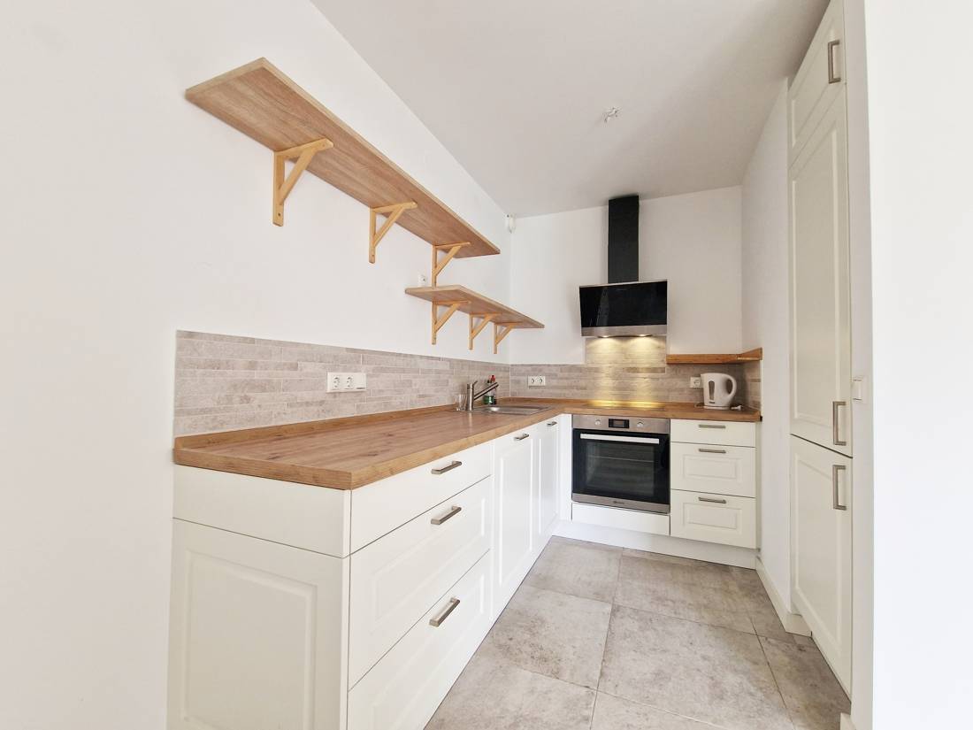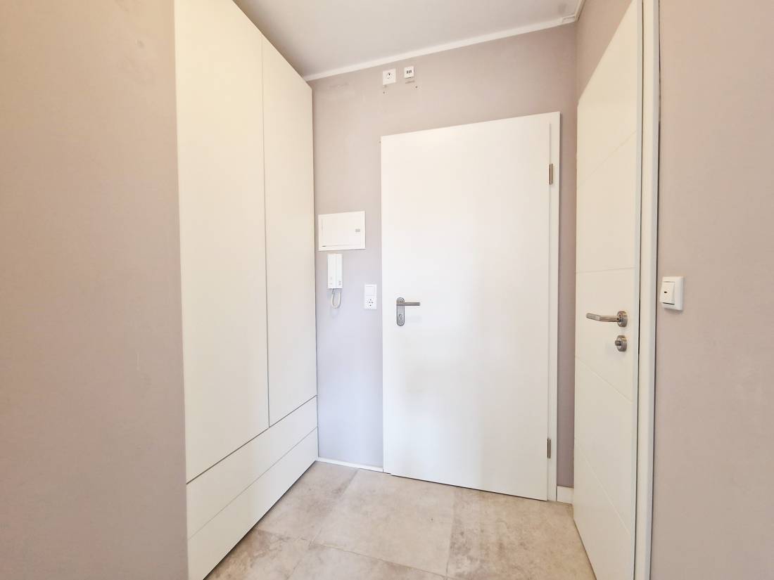Die Wohnung verfügt über einen Wohn- und Essbereich, eine offene Küche, ein Schlafzimmer, einen Eingangsbereich mit Einbauschränken und ein modernes Duschbad mit Fußbodenheizung.