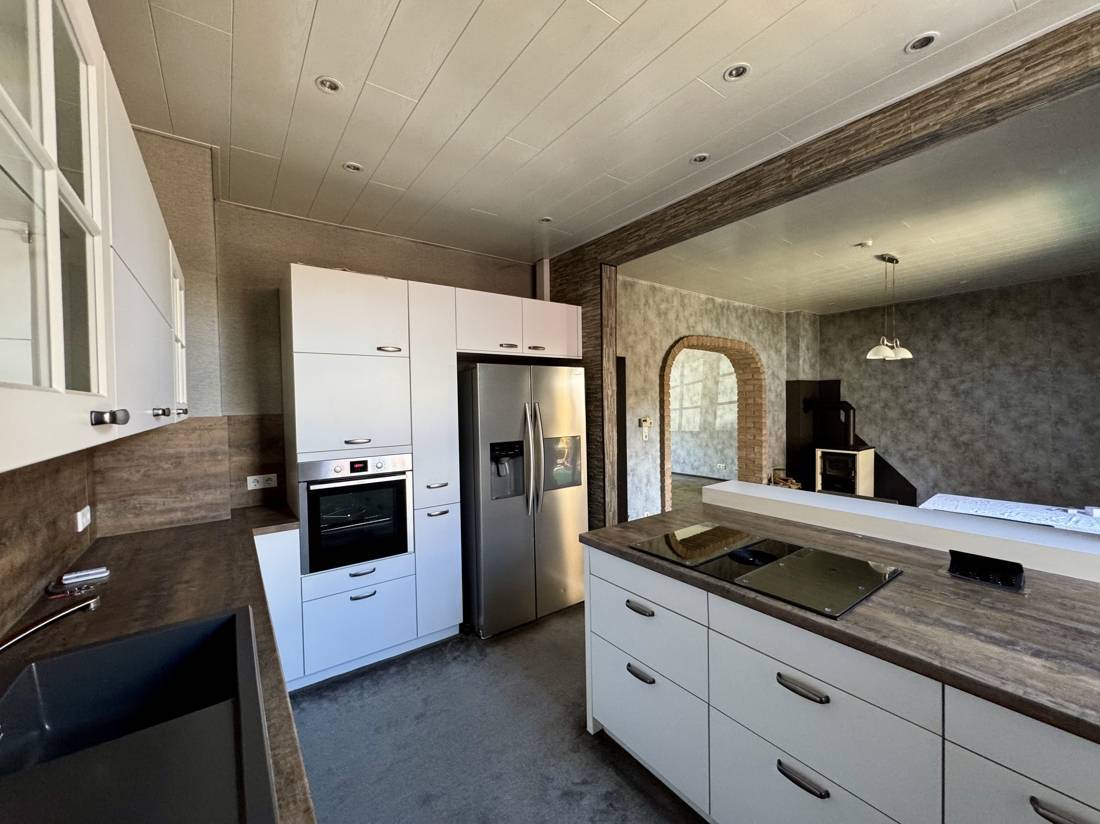 Die offene Küche besticht durch ihren modernen Tresen und das innovative Bora-Kochsystem, das das Kochen zum Erlebnis macht. Direkt angrenzend befindet sich ein praktischer Hauswirtschaftsraum, der zusätzlichen Stauraum bietet.