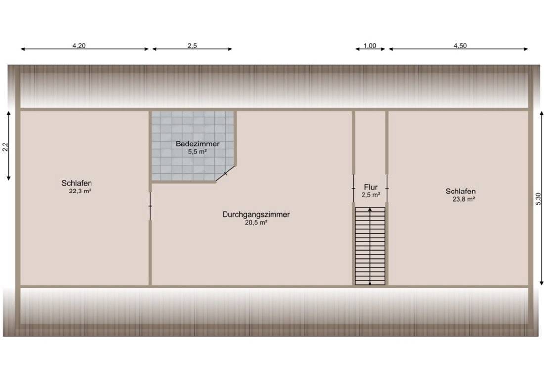 Im Dachgeschoss erwarten Sie zwei Zimmer sowie ein Durchgangszimmer, welche sich flexibel als Kinderzimmer, Büro oder kreativer Rückzugsort nutzen lassen. Ein weiteres Duschbad sorgt auf dieser Etage für zusätzlichen Komfort.