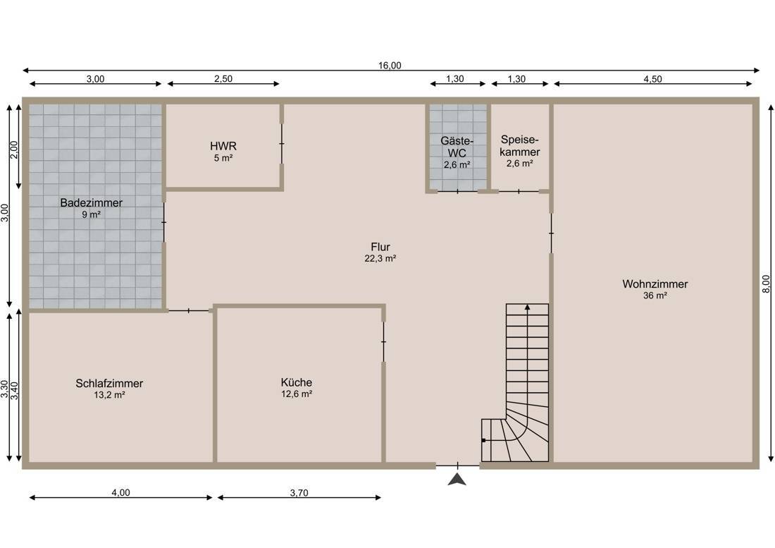 Im Erdgeschoss heißt Sie ein einladender Eingangsbereich willkommen, der direkt in das helle Wohn- und Esszimmer führt. Zudem befinden sich auf dieser Ebene ein großzügiges Schlafzimmer, ein Badezimmer mit Dusche und Wanne sowie ein separates Gäste-WC. Die Küche ist mit einer Einbauküche ausgestattet und der Hauswirtschaftsraum bietet extra Stauraum und Funktionalität.