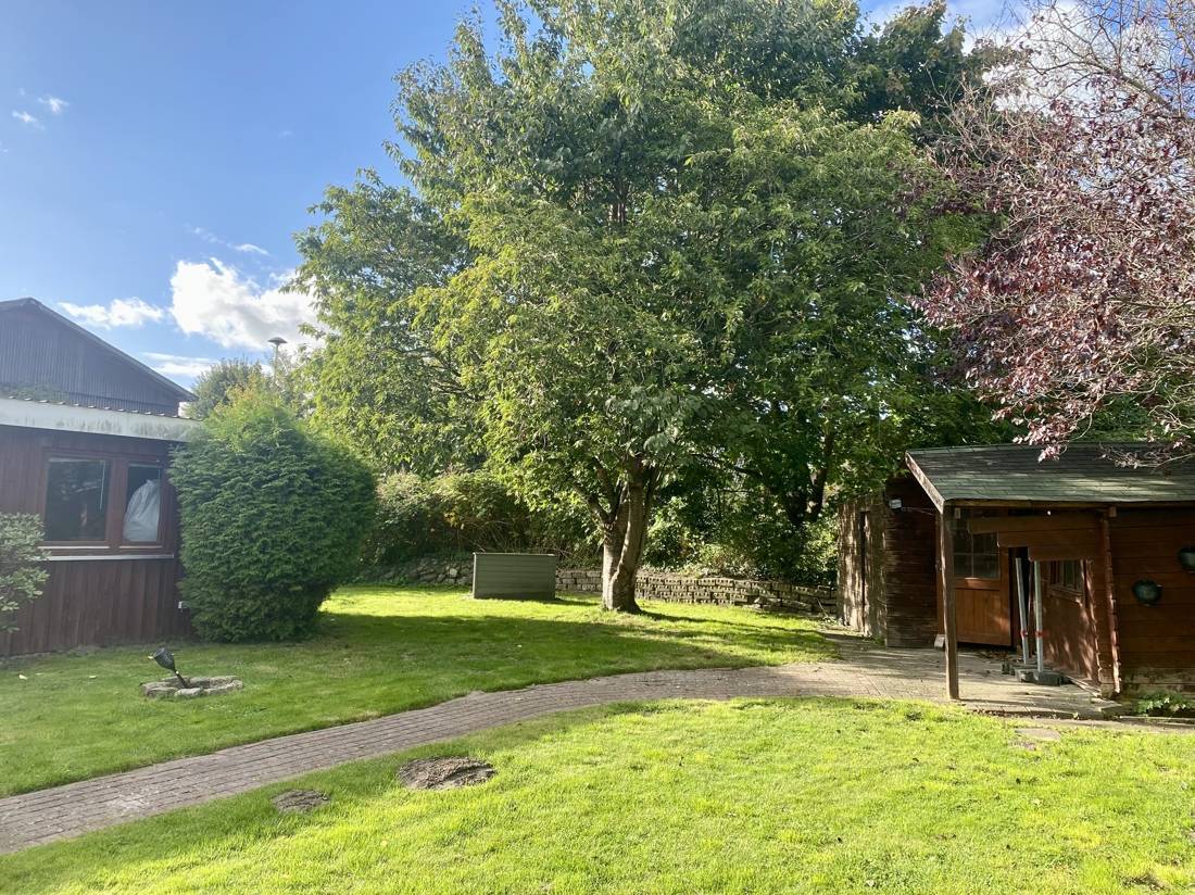 Im Außenbereich lädt die überdachte Terrasse zu entspannten Stunden im Freien ein. Der gepflegte Garten mit großem Werkstatt- bzw. Gartenhaus bietet viel Platz für Hobbys und Handwerk.