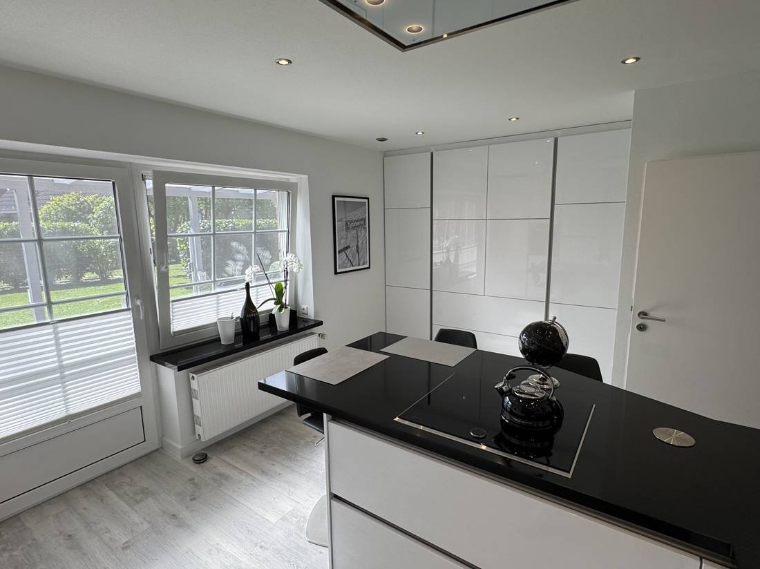 Schon der großzügige Flur im Erdgeschoss empfängt mit einer einladenden Offenheit. Von hier aus erreichen Sie den Wohn und Essbereich, eine moderne Küche sowie ein Gäste WC, HWR und einen Abstellraum. Bodentiefe Fenster öffnen den Blick auf Terrasse und Garten – ein Ort für lange Sommerabende mit Familie und Freunden. Praktisch und durchdacht: der Hauswirtschaftsraum mit direktem Zugang zur Garage.