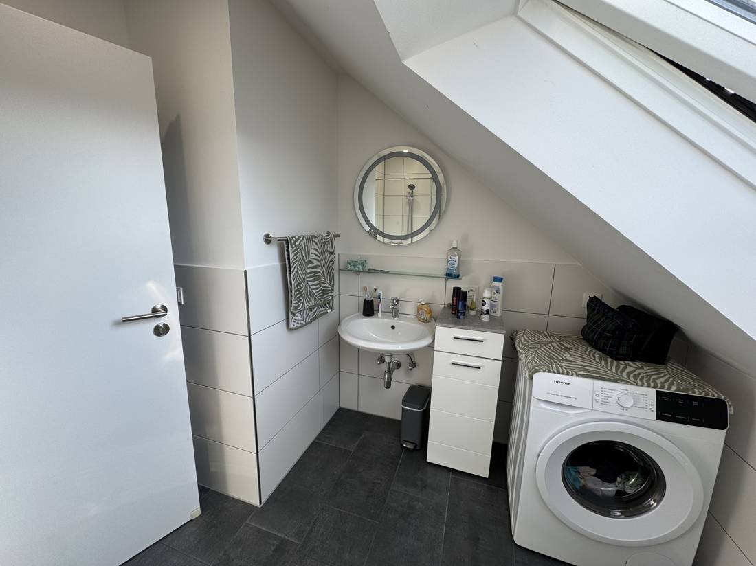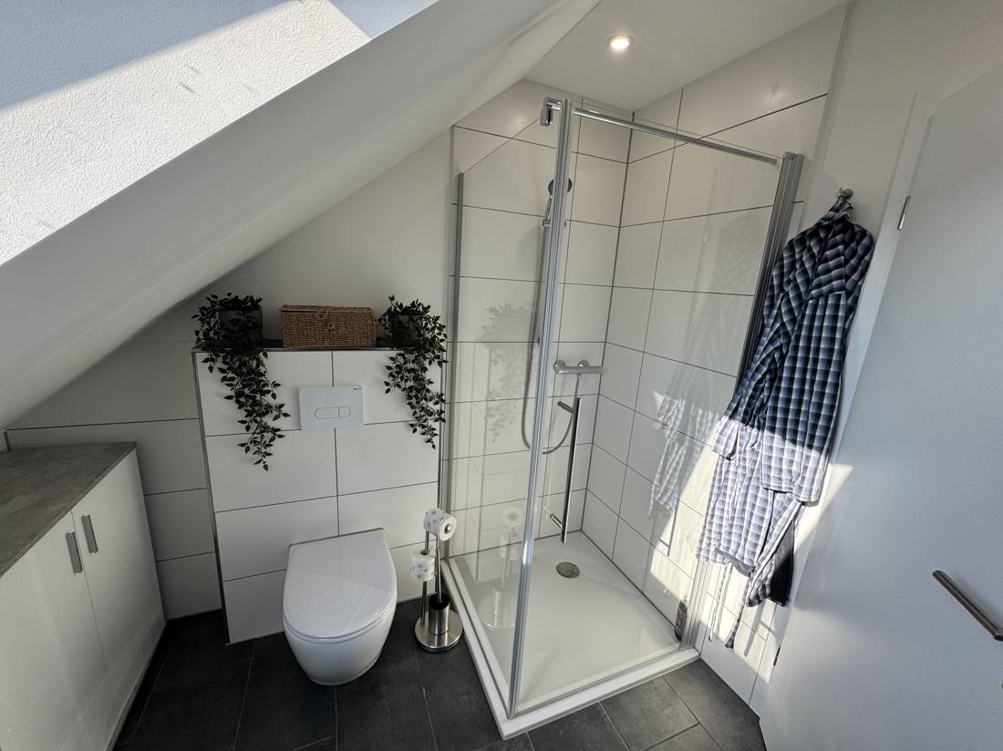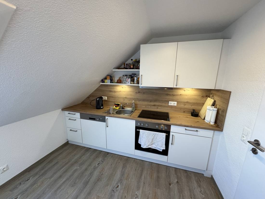 Die Dachgeschosswohnung wurde erst 2024 umfassend modernisiert und präsentiert sich in einem neuwertigen Zustand. Hier wurden sämtliche Oberflächen, Türen und Böden erneuert, ein modernes Duschbad geschaffen und eine hochwertige Einbauküche installiert. Neue Veluxfenster sorgen für lichtdurchflutete Räume und eine angenehme Atmosphäre. Diese Einheit ist seit Oktober 2024 an eine Einzelperson vermietet.